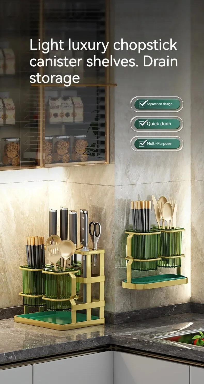 Kitchen Chopstick Barrel Knife Rack Home Drain Shelf Put the Container Put Chopsticks Basket Bucket Wall Hanging Multi-layer Cou Price range: $18.10 through $18.91